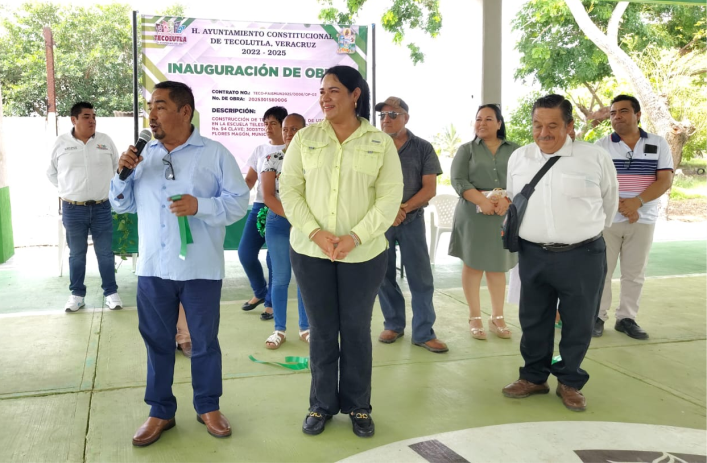 Tecolutla, Ver., 10 de julio de 2025. La mañana de este miércoles, la presidenta municipal, Profa. Gabriela Valdez Santes, encabezó la inauguración del techado del área de usos múltiples en la Escuela Secundaria Técnica Agropecuaria No. 94, una obra largamente anhelada por la comunidad educativa.